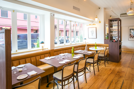 Perla Cafe is an Italian bistro located in New York. The design incorporates a simple and warm color palette, combined with the rich art collection by the owner that reflects the rich and distinctive artistic character of New York. Despite a limited budget, the space is filled with art pieces. Classic leather, brass, and walnut are paired with elegant marble accents, creating an atmosphere in the restaurant that is both refined and warmly inviting, resembling a home. Designed with Wilkinson Architects.